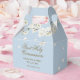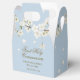 Ballotin de première communion sainte florale moderne avec fleur blanche délicate sur un arrière - plan bleu poussiéreux avec vos informations spéciales jeu dans l'élégante typographie de script or. Vous pouvez personnaliser avec votre propre message de remerciement au contraire. Une façon parfaite de remercier vos invités ! Conçu par Thisisnotme©