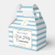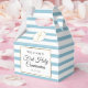 Avec un fond à rayures bleues et blanches, cette élégante boîte de première communion présente une bordure élégante en faux or qui encadre les détails de votre événement en typographie chic et un message de remerciement spécial au verso. Conçu par Thisisnotme©