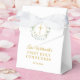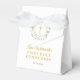 Élégante boîte à cadeaux de première communion solennelle florale comportant une jolie couronne de laurier et une croix dorée avec un nom personnalisé et une date spéciale inscrits dans une typographie dorée chic. Vous pouvez également personnaliser avec votre propre message de remerciement sous le couvercle. Un moyen parfait de dire merci à vos invités ! Conçu par Thisisnotme©
