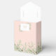 Boîte de faveur de première sainte communion aux feuilles de verdure douce élégantes avec des feuilles délicates à l'aquarelle sur fond rose blush encadrant le nom personnalisé et la date spéciale en typographie dorée chic. Vous pouvez également personnaliser avec votre propre message de remerciement sous le couvercle. Une façon parfaite de dire merci à vos invités ! Conçu par Thisisnotme©