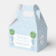 Ballotins élégants avec un arrière - plan de clé grecque bleu ciel et blanc, la crête monogramme du couple de chaque côté, et topiaire en bois de boxe sur le panneau avant, avec le texte personnalisé.