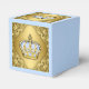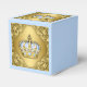 Prince ballotins avec beau bébé bleu et couronne or et élégant arrière - plan tourbillon or. Ces boîtes de faveurs de prince party sont idéales pour un baby shower prince ou une fête d'anniversaire de prince et sont facilement customisées pour votre événement en ajoutant du texte dans le style de police et la couleur de votre choix. Vous pouvez également modifier la couleur de l'arrière - plan et déplacer ou redimensionner la couronne.