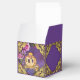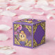 Boîtes de faveurs de fête d'anniversaire de princesse de conte de fées avec de jolies roses roses sur un fond violet scintillant avec un beau carrosse royal de princesse. Vous pouvez facilement personnaliser cette belle boîte de faveur d'anniversaire de princesse rose et violette pour votre événement en ajoutant simplement du texte dans le style et la couleur de police de votre choix. Il s'agit d'un design imprimé sans vrais bijoux, rubans, paillettes, etc.