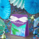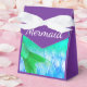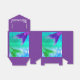 Ballotin à thème Mermaid avec queues de sirène vert et violet et arrière - plan de balance de sirène de teintes bleues. Les côtés et le dessus sont violets foncés avec le mot "Sirène" en blanc.