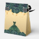 Ce ballotin élégant, classique et féminin est un cadeau parfait à offrir à une quinceañera. Un arrière - plan doré, des roses vert émeraude et une robe. Avec le texte : Quinceañera et Merci. Personnalisez et ajoutez votre nom et votre date pour une touche personnelle supplémentaire !