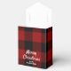 Le Ballotin Plaid Rouge et Noir Buffalo dans une forme triangulaire avec arc, avec Confetti Parties scintillant Or et le libellé personnalisé est parfait pour donner des cadeaux de Noël et des faveurs de fête de vacances.