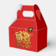 Composition avec papier traditionnel chinois doré coupé d'un Ox + petit lettrage moderne pour l'année de l'OX 2021 et symbole d'idéogramme chinois Ox sur un petit cercle noir. Conception sur ballotin gable + Nom et adresse professionnelle pour customiser avec arrière - plan rouge. Disponible en cube, tente et ballotins à emporter. Carte de voeux, carte postale de vacances, invitation, fournitures de fête et plus encore. Parfait pour le Nouvel An Chinois de l'Ox 2021 ou anniversaire (personnes nées dans l'Ox Year).