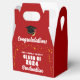 Ce ballotin de la soirée senior moderne rouge et blanc personnalisé présente des chandails blancs décorant autour de votre école de troisième cycle et année sous Félicitations en écriture cursive. De grands cadeaux pour vos diplômés du secondaire ou du collège 2024.