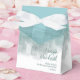 Ce ballotin mariage moderne "Merci" a une atmosphère chaleureuse et personnelle et présente un design d'aquarelle abstrait qui ressemble à des reflets sur l'eau. Cet exemple présente une palette de couleurs de dégradé allant de turquoise doux au vert profond de l'océan. Customisez avec les noms de la mariée et du marié et un message de remerciement personnel en utilisant le modèle fourni. Recherchez ID774 pour voir l'ensemble complet de correspondances et les options de couleurs supplémentaires.