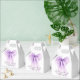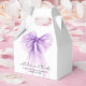 Élégantes boîtes de cadeaux de fête de mariage avec un ruban coquet violet à l'aquarelle, "avec amour et remerciements" présenté dans une écriture moderne chic, et le nom de la mariée et la date de la douche dans une lettre simple.