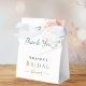 Élégant fond blanc décoré de roses aquarellées rose et or rose, floral, fleurs, verdure d'eucalyptus. Avec le texte : Bridal Shower et Merci écrit avec un style d'écriture manuscrite moderne en noir, vert et or. Personnalisez avec le nom de la future mariée et une date.