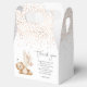 Planifier un premier anniversaire est un travail d'amour, et nos charmantes boîtes de remerciement à thème d'ours sont la touche finale idéale. Avec une illustration attendrissante d'un ours tenant de l'herbe de la pampa parmi des fleurs de pêche et un message de remerciement personnalisable, ces boîtes expriment la gratitude de manière adorable. Personnalisez la police, la taille et la couleur selon vos préférences pour une touche personnelle supplémentaire.
