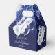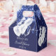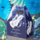 Élégant, classique, glamour Fête de mariage. Une couleur de fond bleu marine. Sur le devant et le dos : Personnalisez et ajoutez un nom et une date. Le nom est écrit avec un style d'écriture moderne à la main. Décoré de gouttes de paillettes fausses bleues, d'un effet de peinture qui coule et de ballons blancs.