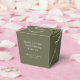 This wedding favor box features clean, minimalist typography paired with an earthy olive green palette. The favor box is personalizable with names and date, making it easy to coordinate with modern wedding celebrations and cohesive stationery suites. Its simple text-forward style works beautifully for receptions, showers, and welcome tables. A timeless detail that adds a polished finishing touch to your wedding day.
