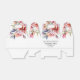 This wedding favor box displays a rhododenron branch with peach-pink flowers and sage green leaves. The couple's names are elegantly displayed in decorative typography. A 'Thank You' message is also included, expressing gratitude to the guests. Completing the look, a stylish black thin line adds a touch of sophistication at the bottom of the box.