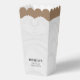 Ce ballotin de popcorn vêtu de blanc mariage présente un design charmant en forme de robe mariage, ajoutant une touche unique à votre célébration. Parfait pour tenir du pop-corn ou d'autres gâteries, il peut être personnalisé avec vos détails de l'événement. Idéal pour les mariages, les douches nuptiales ou les fêtes de fiançailles, il fait une faveur amusante et mémorable pour les clients. Idéal pour les épouses, les demoiselles d'honneur et les membres de la fête de mariage !