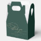 Cette calligraphie verte romantique, boîte de remerciement de mariage, est parfaite pour une simple réception de mariage. Le design classique moderne comprend des tourbillons fantaisistes et des fleurs fantaisistes avec une magnifique typographie de feuille d'or en faux champagne. Personnalisez les boîtes avec vos noms, l'événement (le cas échéant) et la date. Ces ballotins peuvent être utilisés pour une réception de mariage, une douche nuptiale ou tout événement! Remarque : Ce design ne comporte pas de véritable feuille d'or. C'est un graphisme de haute qualité fait pour ressembler à du papier doré.