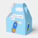 Fusée de dessin et nuages avec effet papier journal appliqués aux dessins. Design original. Modifiez le nom pour customiser. Ballotins personnalisés. Une idée de décoration festive pour les enfants qui aiment la science-fiction et les aventures spatiales.
