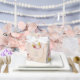Une élégante boîte de mariage rose fleurie en or avec azalées. Ce ballotin fait partie d'un ensemble complet d'invitations de mariage.