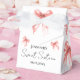 Elegant Sweet Sixteen Birthday Party Favor Box template w/ a watercolor coquette bow & modern typography script.