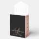 Personnalisez cette magnifique boîte de mariage motif en or rose avec votre monogramme personnalisé, nom de mariée et de mariée et date de mariage. Elke Clarke © Parfait pour un élégant mariage doré noir et rose.
