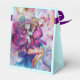 Clown rose, coloré, capricieux, drôle jouant du bugle avec un hibou expressif et des notes musicales joyeuses, fleurs, feuilles en rouge vif, fuchsia, violet, violet, bleu, couleurs blanches, aquarelle de Bulgan Lumini (c)