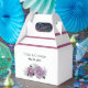 Une boîte de bienvenue de mariage élégamment décorée avec un ensemble de belles fleurs y compris les roses et l'option de personnaliser.