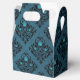 Motif damassé rustique vintage noir et turquoise avec boîte cadeau de roses aqua iridescentes idéal pour les mariages gothiques ou Halloween !