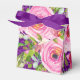 La parties scintillant violette est la toile de fond brillante pour cette impression florale rose féminine dans les tons rose, pêche et crème. Personnalisez l'étiquette cadeau pour répondre aux besoins de votre événement.