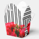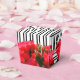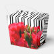Boîtes de faveur de fête de style take out de 2" x 2" x 2,75" avec des roses rouges aquarelle sur des bandes noires et blanches. Voir les articles CORRESPONDANTS dans notre magasin.