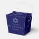 Cette boîte de faveur de la fête de Bar Mitzvah bleu royal a une belle étoile artistique de David dessin au sommet. Complétez les ballotins personnalisés avec votre nom personnalisé.