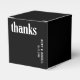 Boîte moderne de faveur de mariage avec un design simple et minimal avec "merci" en gras de typographie blanche sur un arrière - plan noir. Les couleurs peuvent être modifiées en n'importe quelle couleur que vous choisissez dans l'outil d'édition de conception. Ces boîtes de faveur contemporaines de mariage sont idéales pour un mariage à thème goth ou halloween.