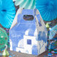 Une aquarelle moderne bleu et blanc d'Oia sur l'étonnante île grecque de Santorin. Art original de Nic Squirrell. Modifiez le texte du Merci pour customiser.