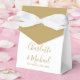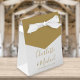 Boîte élégante or et blanc mariage avec des noms de signature chic et design et date spéciale dans la typographie moderne. Vous pouvez personnaliser avec votre propre message de remerciement sous le couvercle. Une façon parfaite de remercier vos invités ! Conçu par Thisisnotme©