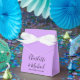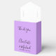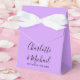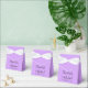 Elégant ballotin de mariage avec des noms de script signature et date spéciale dans la typographie moderne sur un arrière - plan de lavande lilas. Vous pouvez personnaliser avec votre propre message de remerciement sous le couvercle. Une façon parfaite de remercier vos invités ! Conçu par Thisisnotme©