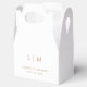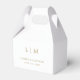 Un Ballotin de mariage simple mais élégant avec un design minimaliste moderne avec votre monogramme de deux lettres avec vos noms et votre date. Tous les éléments de conception sont en faux or sur un arrière - plan blanc et peuvent être changés dans l'outil d'édition de conception. Ces boîtes de Faveur Mariage classique vont bien avec n'importe quel style de mariage.
