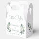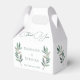 Un script de calligraphie verte simplement élégant avec une feuille d'eucalyptus aquarelle de chaque côté en bas pour décorer cette belle et minimaliste boîte de mariage de automne parti faveur. Un design mariage moderne pour une soirée de jardin la nuit.