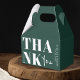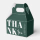 Vous cherchez une élégante boîte moderne pour mariage ? Regardez nos boîtes de Merci de mariage Emerald Green Bold simple et chic. Doté d'une calligraphie audacieuse qui ajoute une touche de sophistication, ce ballotin vert émeraude et blanc offre un look propre et simple. Cette boîte de faveur minimaliste de mariage a une torsion moderne qui doit captiver ceux qui ont l'oeil pour une sophistication subtile.
