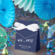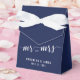 Boîtes simples bleu marine et blanc pour mariage (ballotin de tente avec ruban blanc) avec texte personnalisable - vous pouvez ajouter le nom de la mariée et du marié et la date du mariage.