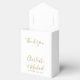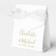 Élégante boîte de remerciement de mariage simple en or et blanc avec des noms de signature élégants et la date spéciale écrite dans une typographie moderne. Vous pouvez personnaliser avec votre propre message de remerciement sous le couvercle. Un moyen parfait de dire merci à vos invités ! Conçu par Thisisnotme©