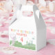 This Slumberkins Unicorn birthday gift box design features a sweet pastel woodland scene filled with charm and imagination. A joyful unicorn character stands with raised arms in a rolling green meadow surrounded by soft trees, tiny stars, and playful nature details. Above the scene, colorful rainbow lettering spells out “Happy Birthday” with a custom name and age displayed prominently, creating a bright and personalized focal point. The gentle mix of blush pinks, soft greens, sky blues, and warm coral tones gives the artwork a whimsical, storybook-inspired feel that is perfect for little ones celebrating a magical milestone.