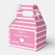 Parfaitement amusante boîte de faveur de mariage rayé seersucker rose et blanc qui est personnalisable avec le nom de la mariée et des mariés et est prêt pour un Snack de minuit