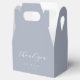 Perfect for a "Something Blue" or coastal wedding theme, these elegant favor boxes features soft dusty blue color with delicate calligraphy. A part of the "Delicate blue floral wedding collection".