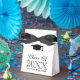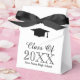 Élégants Ballotins noirs et blancs de la fête de graduation. Parfait pour les étudiants de troisième cycle célébrant leur première année. Ajoutez le nom et l'année du lycée. Modèle de typographie élégant avec logo de casquette de goût académique. Couleur arrière - plan personnalisable et couleur arc. Une idée de cadeau en vrac pour lui. Remplir de bonbons, bonbons et autres gâteries.