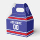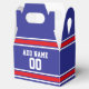 Blue, Red and White colors -- If you are a Fantasy Football team owner, make your own products and show off to your friends! Or - Do you play High School Football and want a memento? This jersey design is perfect for anyone playing sports.
