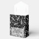 Squelettes sur fond noir et votre message en lettrage chic sur le devant, vous allez vous amuser avec ces boîtes de fête à ruban de style tente à fermeture pour les fêtes d'Halloween, les mariages et plus encore. ARTICLES assortis dans notre magasin.