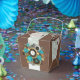 Ballotins Steampunk Clock and Turquoise Roses on Striped