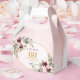 Celebrate her milestone in style with this elegant boho 60th birthday favor box, featuring watercolor burgundy and blush roses intertwined with lush eucalyptus greenery and shimmering gold leaves inside a delicate gold oval frame. Perfect for adding a touch of sophistication and romance to your birthday party, this design blends burgundy, maroon, and blush tones with subtle gold accents — ideal for a modern, classic, or bohemian birthday theme.