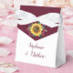 Ces boîtes de faveur de mariage sont décorées d'une aquarelle fleurie avec des tournesols, des fleurs bordeaux et un feuillage avec un cadre géométrique en faux or. Personnalisez-les avec votre propre texte. Ces étiquettes font partie d'une collection qui comprend une gamme de papier à lettres mariage et d'autres articles mariages correspondants. Veuillez consulter la page de collection ou visiter notre magasin pour voir la gamme complète.