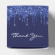 Une couleur bleu marine arrière - plan. Décoré de gouttes de parties scintillant bleue, la peinture goutte à goutte. Personnalisez et ajoutez un nom, un âge et une date. Script de style moderne à la main. Avec le texte : Sweet 16 et Merci écrit avec un script de style moderne écrit à la main.